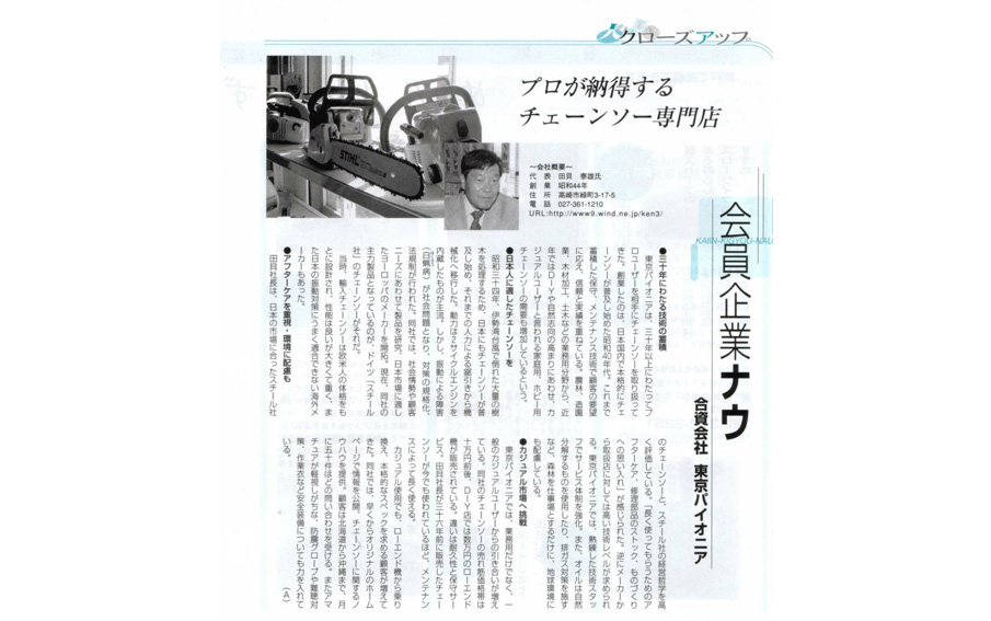 東京パイオニアが商工会議所会報にて取り上げられました。